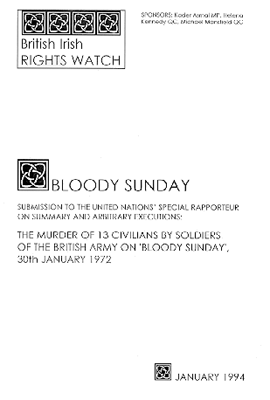 10.6 The relatives of those who died on Bloody Sunday are seeking a new inquiry into their deaths and the prosecution of those responsible. We request the Special Rapporteur to include Bloody Sunday in his next report to the United Nations and to support the relatives' call.