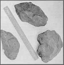 Some of the hundreds of stones which rained down on the marchers. A foot-rule gives an idea of their size.