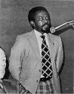 June 1977, Belfast. 10th Anniversary Dinner. Albert D'Lomo from the African National Congress speaking about the lack of civil rights in South Africa at the NICRA Dinner which was held to commemorate the 10th Anniversary of the formation of the Association. On his right is the current Chairman of NICRA, Mr. Paddy Joe McClean. Another speaker at the dinner was Ed Maher, Associate Director of the American Federation of State, County, and Municipal Employees and Seamus Naughton of the tional Association for Irish Freedom New York. |