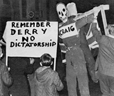 It was in Britain's interest that civil rights should be equated with the abolition of the state. For 50 years the state had thrived on that equation and now in the face of a mass movement demand for civil rights Westminster kicked for touch with the dead bodies in Deny and swung the game once more into a question of the existence of the state. The SDLP fell for the gambit and John Hume said "United Ireland or nothing". Derry's dead killed the civil rights movement by bringing the Provisionals into the centre of the political stage through the immobilisation of NICRA. Unable to win against NICRA, Westminster both changed the rules of the game and selected a new team of opponents.