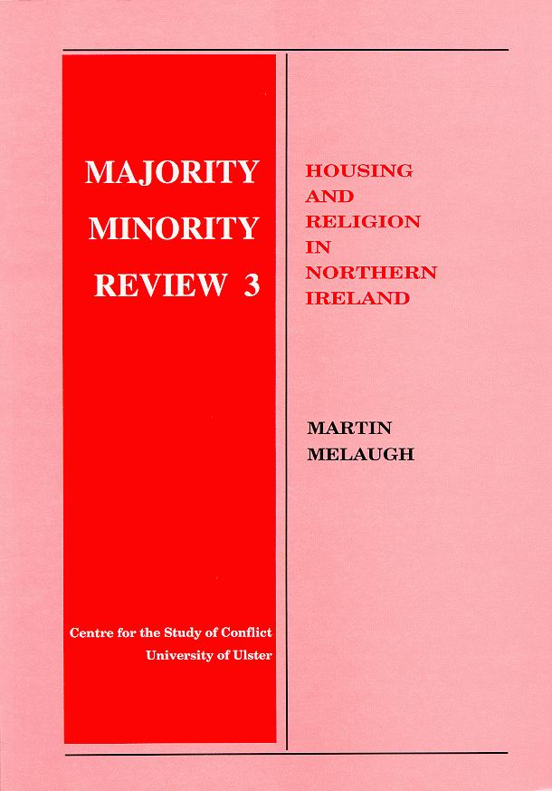 The Majority Minority Review is a series published by the Centre for the Study of Conflict, University of Ulster. The series reviews published research on the comparative material conditions of the two main communities in Northern Ireland. The first issue of the Review focused on education and the second examined research evidence on the relationship between religion and employment and unemployment in Northern Ireland. This issue, the third in the series, considers the relationship between religion and housing. Future issues will consider deprivation and health, and the administration of justice. The aim of the series is to provide an impartial commentary which will inform readers of up-to-date research findings and enable them to monitor developments over a period of time. The Centre for the Study of Conflict has a long-term commitment to publish the Review.